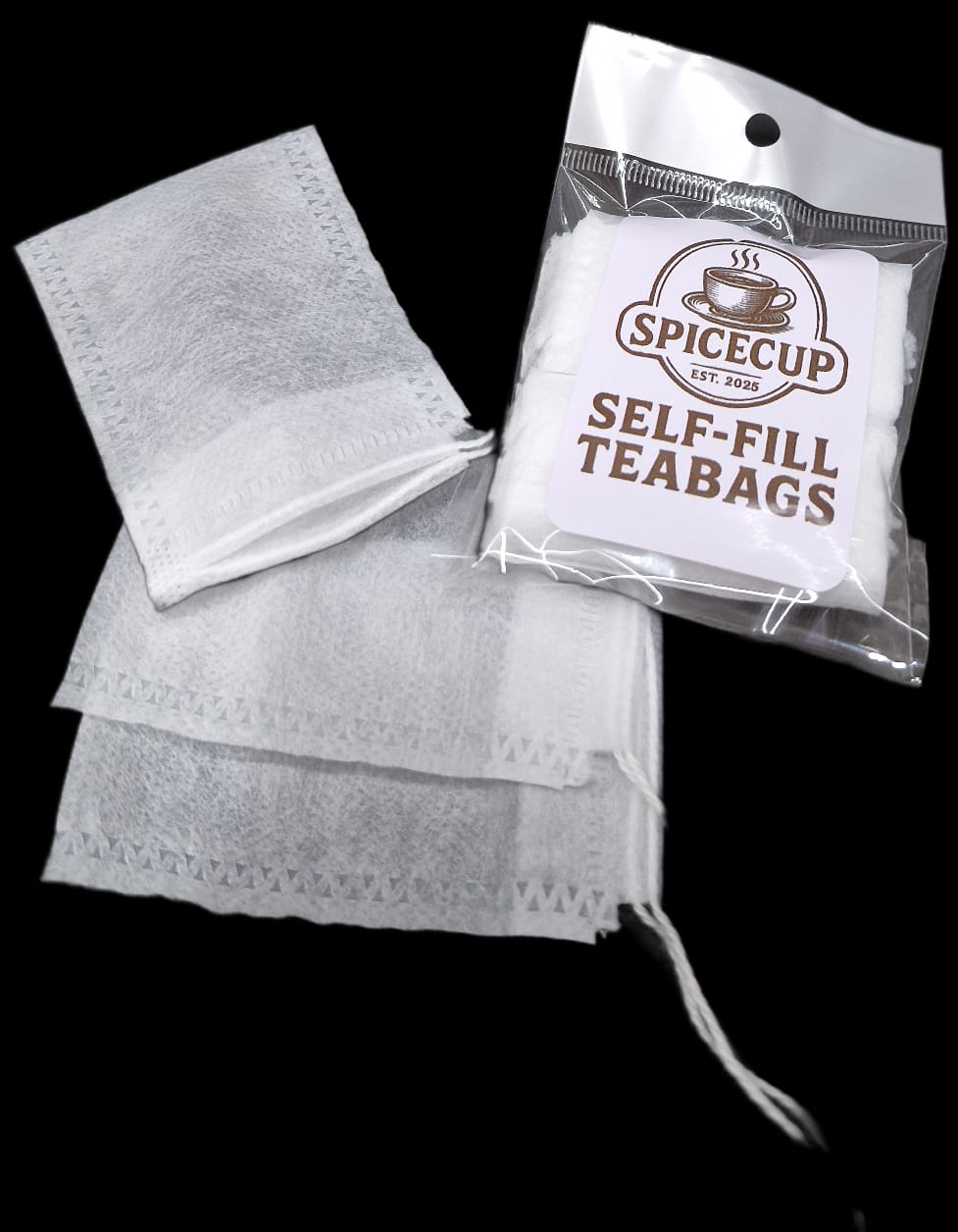 Self-fill teabags are empty tea bags that you can fill with your chosen looseleaf tea, herbs, or spices. They’re reusable and eco-friendly, allowing you to
